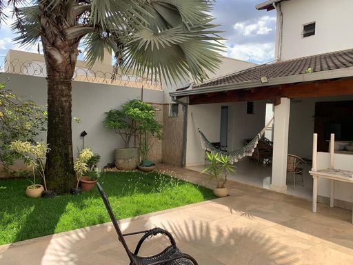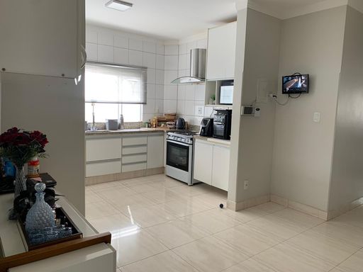 No pavimento térreo, o imóvel conta com salas de estar e jantar integradas, sala de TV aconchegante, lavabo e uma cozinha planejada com armários, funcional e bem distribuída. A área externa é um grande destaque, com varanda gourmet equipada com churrasqueira, bancadas, banheiro de apoio, depósito, despensa e um belo jardim.