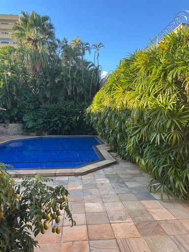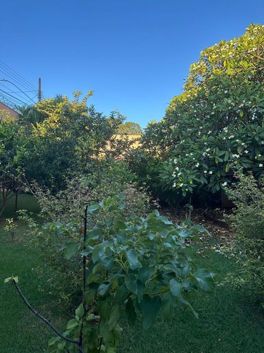 A área externa é um dos grandes destaques, com piscina, sauna, varanda, cozinha aberta de apoio, banheiros e um amplo quintal com pomar, perfeito para momentos de lazer e convivência.