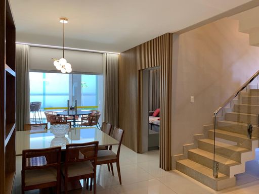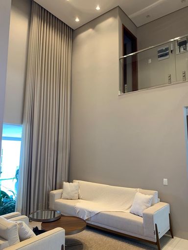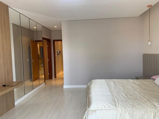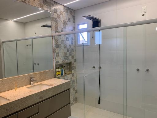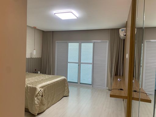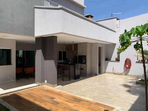 Sobrado moderno e sofisticado com 299 m² de área construída em lote de 300 m², projeto imponente com acabamento em porcelanato e paisagismo de destaque. Piso inferior com sala ampla em dois ambientes e pé-direito duplo, 1 quarto, banheiro social, home cinema com parede ripada e painel espelhado, cozinha planejada com armários, cooktop e forno embutido, lavanderia com armários, área gourmet completa com churrasqueira a carvão e banheiro externo. Piso superior com 4 quartos, sendo 2 suítes, incluindo uma suíte master com closet e sacada, além de um banheiro social. Equipado com alarme, ar-condicionado na suíte master, iluminação 100% LED, piso laminado nos quartos, box blindex, portão eletrônico e 4 vagas de garagem. Localização estratégica, com fácil acesso às principais vias da cidade e perto de tudo: supermercados, escolas, farmácias e posto de saúde.