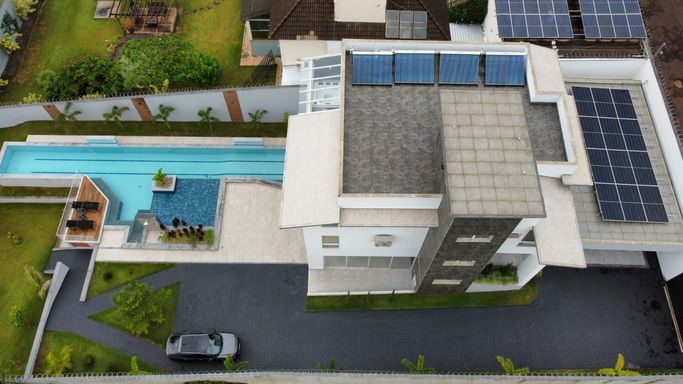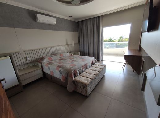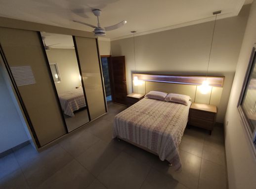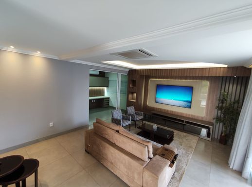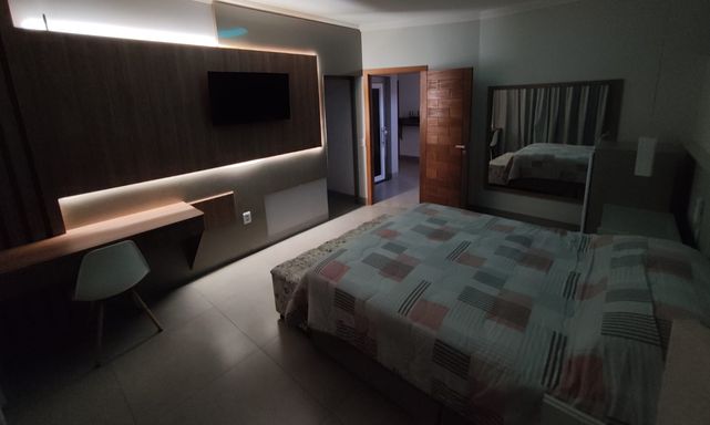 Sobrado Triplex de Alto Padrão – 1.000m² de terreno e 516m² de construção. Imóvel moderno e espaçoso, distribuído em três pavimentos projetados para oferecer conforto, lazer e funcionalidade. No pavimento térreo, dispõe de uma completa área gourmet equipada com churrasqueira, lavabo, banheiro, depósito e uma belíssima piscina com raia olímpica. No segundo pavimento, ambientes amplos e integrados, incluindo sala de TV, sala de jantar, cozinha planejada, escritório reversível para suíte, área de serviço com estendal e varanda. O terceiro pavimento conta com três suítes, todas com varanda privativa, sendo a master com SPA e closet. Entre os diferenciais estão a plataforma de acessibilidade, usina solar, climatização completa em todos os ambientes, sistema de segurança, aquecimento de água em todos os pontos e laje de serviço versátil no quarto pavimento, com vista panorâmica da cidade. O imóvel ainda possui irrigação automática, pomar com 10 variedades de frutas e garagem coberta para até 6 veículos.