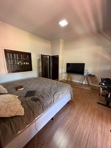 IMÓVEL COMPLETO COM LAZER E SUSTENTABILIDADE 🌟 Possui 4 quartos, sendo 2 suítes, banheiro social e banheiros externos para a área da piscina, piscina aquecida, campo de futebol, quadra de vôlei, área gourmet com cozinha montada e fogão a lenha, lavanderia separada, pomar com árvores frutíferas, galinheiro, canil, poço artesiano para irrigação e sistema de energia solar instalado, ideal para morar, lazer ou investimento.