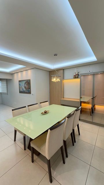 Apartamento moderno de 93m² com 3 quartos, incluindo uma suíte aconchegante; sala de estar e jantar integradas com painel planejado, cristaleira e sapateira que valorizam o ambiente; cozinha completa com armários sob medida e coifa; varanda gourmet perfeita para receber, com churrasqueira, bancada em granito e pia; banheiros elegantes com armários, box em vidro e espelhos; área de serviço funcional, separada e com armários planejados; escritório ou estação de estudos já mobiliado; piso em porcelanato em todos os ambientes; armários planejados em todos os quartos e 2 vagas de garagem (presas). Ideal para quem busca conforto, praticidade e estilo em um só lugar.